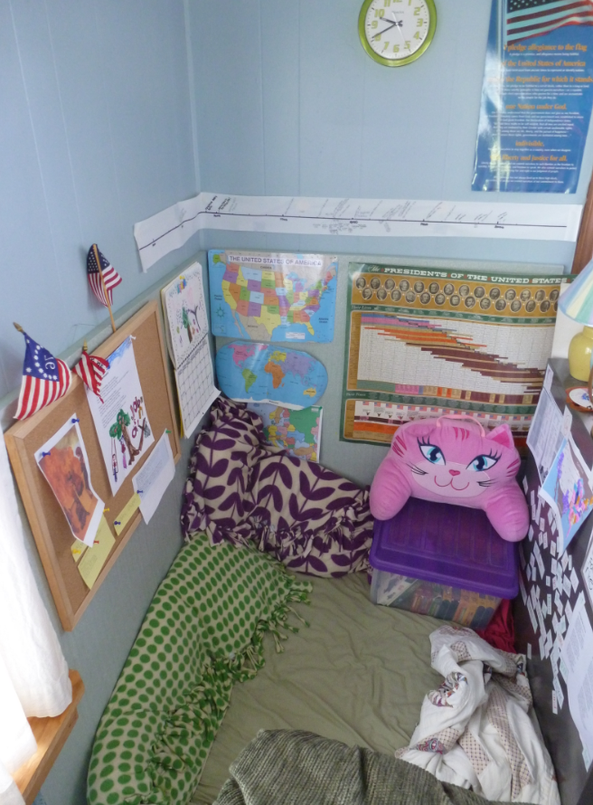 Elementary school was similar to kindergarten (minus the awesome book-nook since we moved to a new house), following the schedules and books laid out by the wonderful moderators of AmblesideOnline. We never followed it to the letter — some books we substituted with other books we had on hand, and we always added science of some kind (NOEO Science and Elemental Science/Sassafras Science for various years). We used MEP math in 1st grade, but quickly found it wasn’t the method Sunshinegirl needed. We adjusted, choosing Singapore Math, and we moved along.