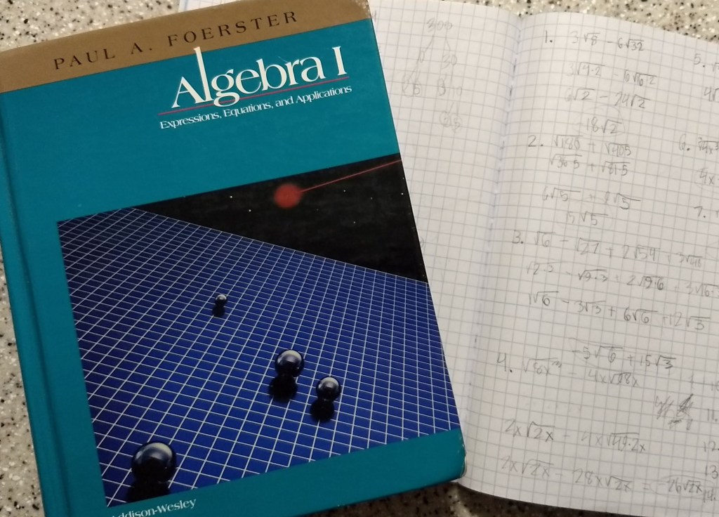 I spent time reading reviews of each on various forums and websites, and both texts sounded impressive. Foerster’s Algebra sounded a little more complete (covered more topics), and it promised more real-world problems to solve (partially due to learning the Quadratic function halfway through the book instead of the traditional end-of-the-year). I didn’t research any other books — I decided to go with Foerster’s.
